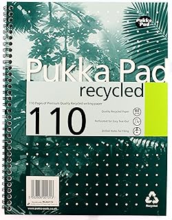 Pukka Pads Réf RCA4 Cahier en papier recyclé Reliure intégrale Ligné avec marge et perforé 4 trous 80 g/m² 110 pages A4 Lot de 3 (Import Royaume Uni)