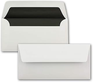 Neuser Paper Lot de 25 enveloppes blanches DIN longues doublées de papier de soie noir 100 g/m² 22 x 11 cm Collage humide