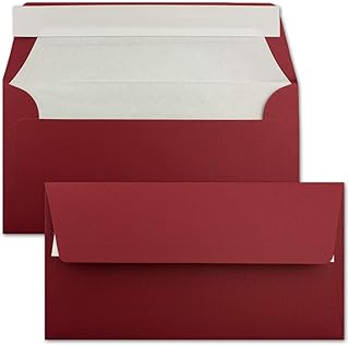 Lot de 25 enveloppes DIN long 11 x 22 cm côtelées en rouge foncé doublées de papier de soie blanc 110 g/m² avec fermeture adhésive