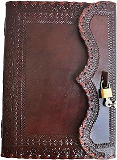 Jaald 25 cm Bloc-notes Carnet Cahier Feuilles Leather journal Intime avec Couverture en Cuir Fait à la Main Verrouiller Cadenas