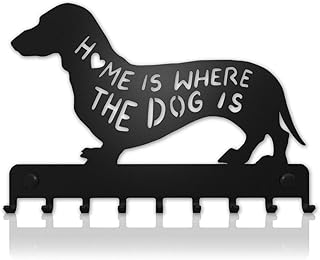 Porte-clés pour fixation murale Chien teckel (9 crochets) Décoratif en métal pour porte d'entrée, cuisine ou garage | Maison de magasin, travail, voiture, clés de véhicule | Décor vintage