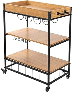 Ejoyous Desserte à roulettes Chariot de Service Vintage, Chariot de Bar Style Industriel Desserte à roulettes en Metal avec Porte Bouteilles et Porte Verres pour Fêtes Soirées Bars Maisons