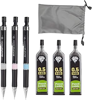 Lot de 3 porte-mines automatiques avec 3 étuis de mines pour écriture, dessin, croquis, illustrations et projets artistiques (0,5 mm)