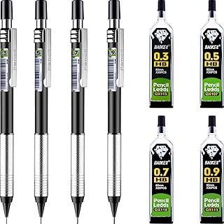 Lot de 8 crayons à mines avec recharge HB, 4 tailles (0,3, 0,5, 0,7, 0,9 mm) pour dessin, croquis, projets artistiques, illustrations, dessins, écritures et travaux techniques