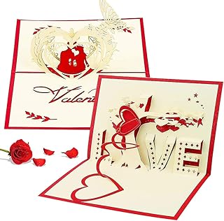 Carte De Saint Valentin CHEPL 2PCS Carte-Cadeau 3D Pop-up Carte D'amour Romantique Carte Anniversaire Marriage avec Enveloppe pour un Mariage, un Anniversaire, La Saint-Valentin