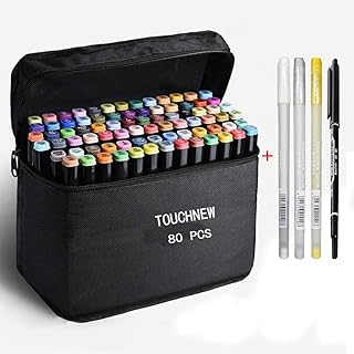 TouchNew Lot de 80 marqueurs couleur double-pointe pour le dessin, les graffitis et les croquis 80