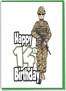 Soldier Carte d'anniversaire 14e anniversaire pour garçons, fils, adolescents, petit-fils, ami, neveu, frère