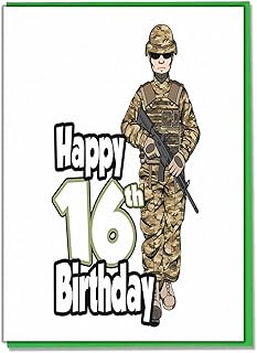 Soldier Carte d'anniversaire 16e anniversaire pour garçons, fils, adolescents, petit-fils, ami, neveu, frère
