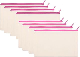 8 Pièces Vierges Pochettes Toile,Fermeture Éclair Crayon Cas,Sacs à Glissière en Toile,Sacs en toile à fermeture éclair,Trousse de Rangement en Toile,Porte-monnaie en Toile (Rose-8)