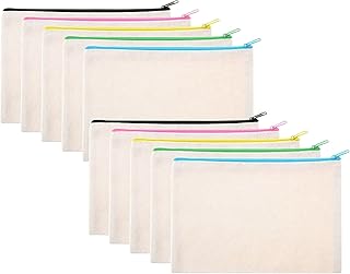 8 Pièces Vierges Pochettes Toile,Fermeture Éclair Crayon Cas,Sacs à Glissière en Toile,Sacs en toile à fermeture éclair,Trousse de Rangement en Toile,Porte-monnaie en Toile (A)