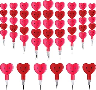 Crayons Empilables de Coeur de Saint-Valentin Crayon de Coeur Empilable en Plastique Crayon de Sourire Visage Mignon de Saint-Valentin, Papeterie dÉcole Maison Cadeaux (Rouge et Rose)