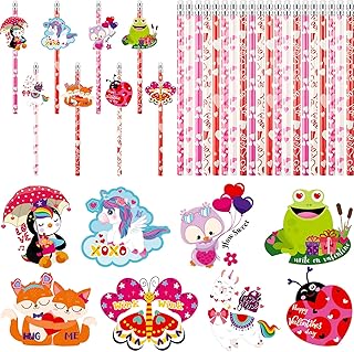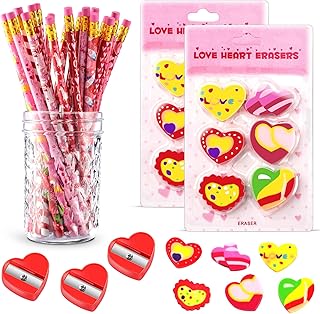MIAHART 48 pièces crayons de la Saint-Valentin coeur gommes ensemble fournitures de bureau scolaire accessoires de papeterie décorations de fête pour étudiants, enseignants, employés de bureau (48)