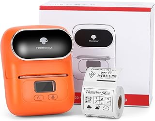 Phomemo M110 Bluetooth Imprimante d'étiquettes imprimante etiquette portable thermique,Taille d'impression 20mm-50mm, compatible avec Android & ios,Utilisé au bureau,code à barres,câble,magasin.Orange