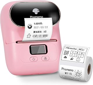 Phomemo M110 Bluetooth Imprimante d'étiquettes imprimante etiquette portable thermique,Taille d'impression 20mm-50mm, Utilisé au bureau,code à barres,câble,magasin,Compatible avec Android et ios.Rose